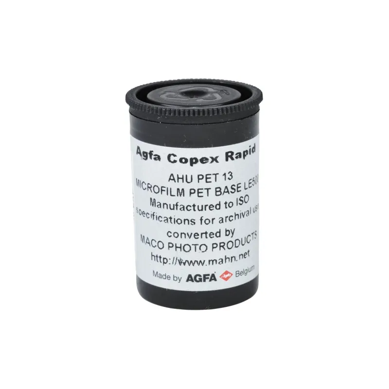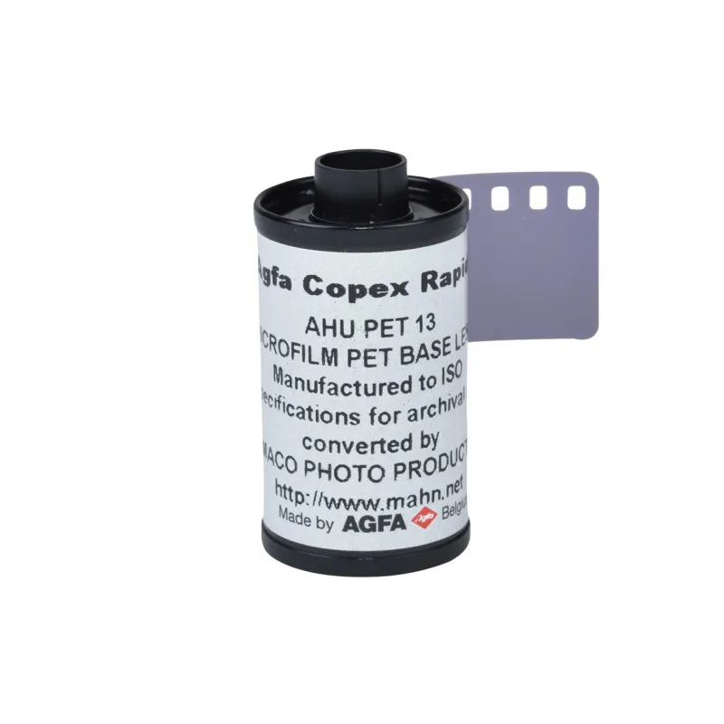 Agfa Copex Rapid is a low-speed panchromatic black and white film with a nominal sensitivity of ISO 50/18°. Excellent resolution, very fine grain and excellent acutance are characteristic of Copex Rapid. Copex Rapid is ideal for reversal processing in the Scala process