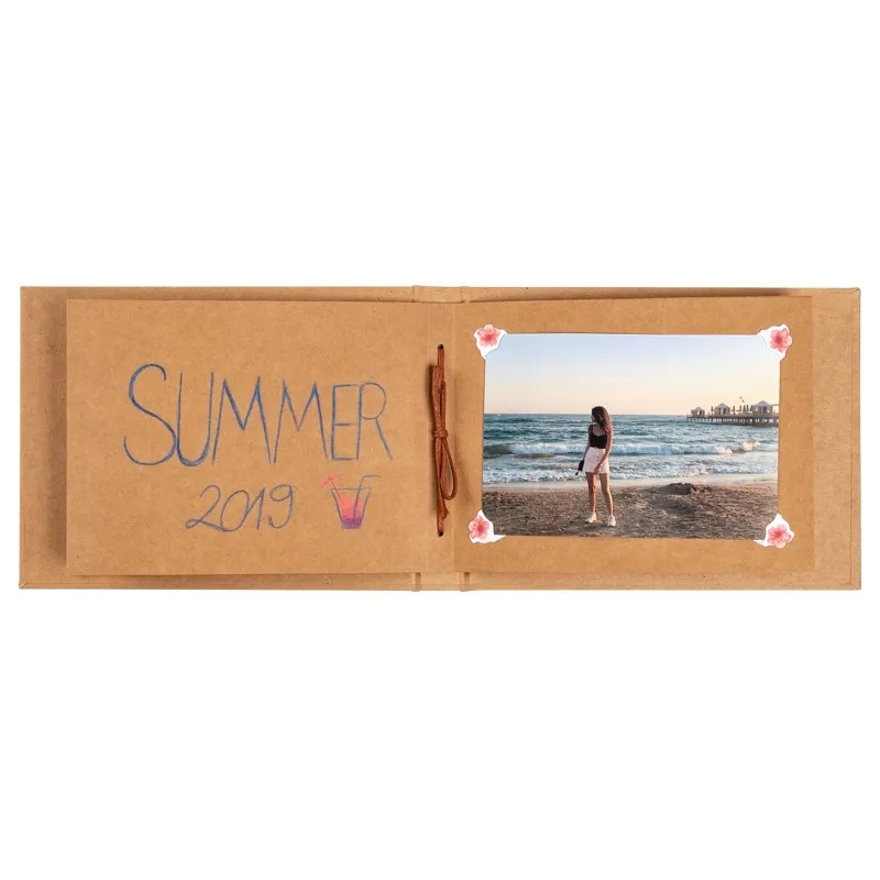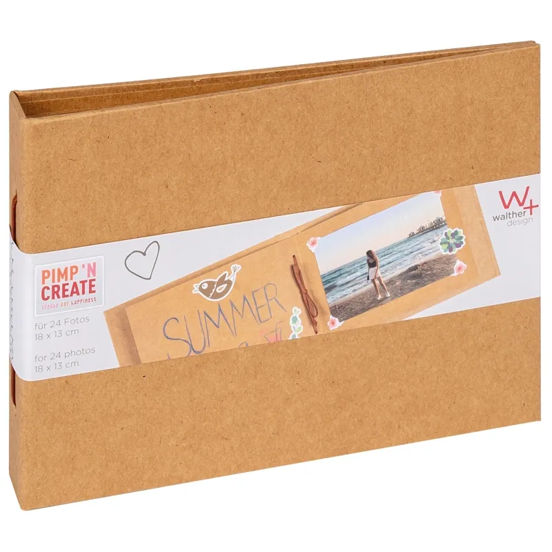 Мини -альбом, твердый переплет, с привязкой шнура, полностью изготовленный из ремесленной бумаги. Для приклеивания в 24 фотографиях до 10x15 см в формате с опцией маркировки или для 24 фотографий 13x18 см. Формат без надписи поверхности, в горизонтальном формате. Цвет: коричневая / ремесленная бумага