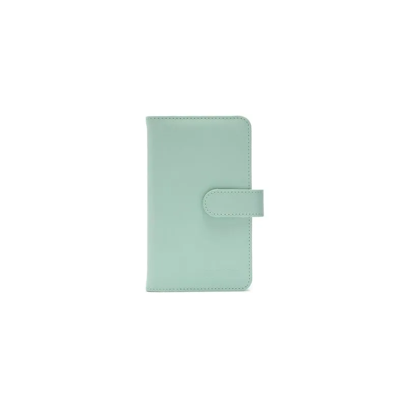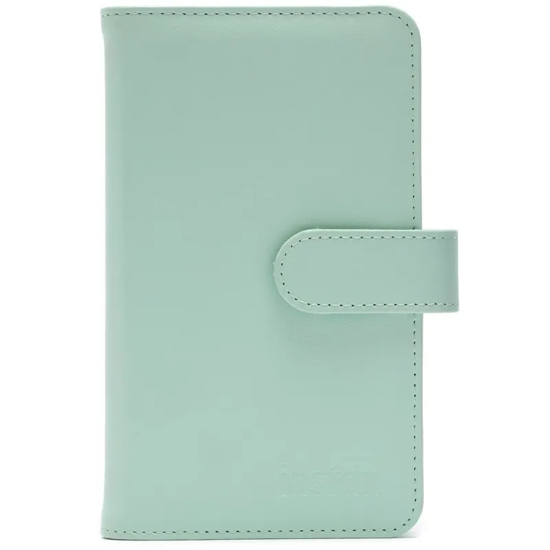 Альбомы-бумажники для фотографий Instax доступны в 5 цветах: Пастельный голубой, Мятный зеленый, Цветущий розовый, Сиреневый фиолетовый и Глиняный белый. Эти красочные альбомы изготовлены из полисинтетической кожи и вмещают до 108 фотографий Instax. Передняя обложка с мягкой подкладкой и отдельные вставки для фотографий обеспечивают полную защиту каждого снимка.