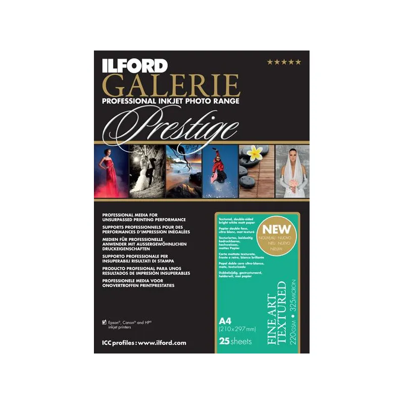 GALERIE Prestige Fine Art Smooth and Fine Art Textured papers complement their Prestige Gold Cotton counterparts by offering a double-sided alpha-cellulose alternative capable of delivering stunning contrast and sharpness along with extra punch for brilliant colours and intriguing separation in black and white prints.