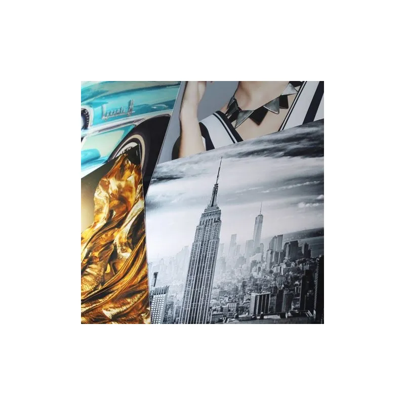 ;You are currently viewing the metallic version of the paper. Because of the metallic look, the paper has a glossy, almost reflective finish. The metallic paper is of a heavier quality, which is also extra white. The density of black values is also higher. The metallic paper makes blue, orange and red colors stand out from the print. It also increases contrast and shadows. The vividness of the photo is more evident.