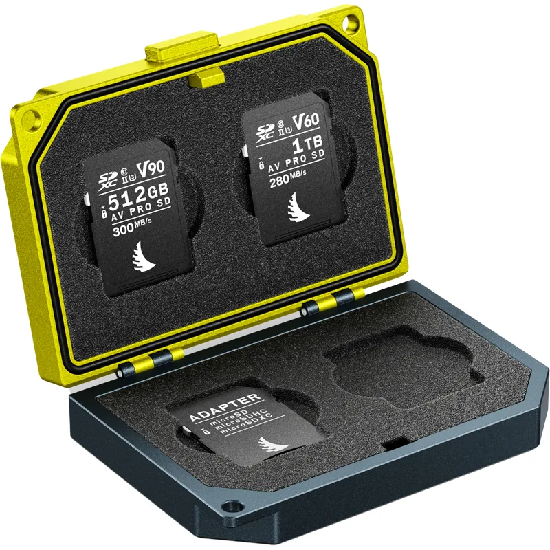 Жесткий алюминиевый чехол Angelbird предназначен дл хранени и транспортировки до 4 карт памти.