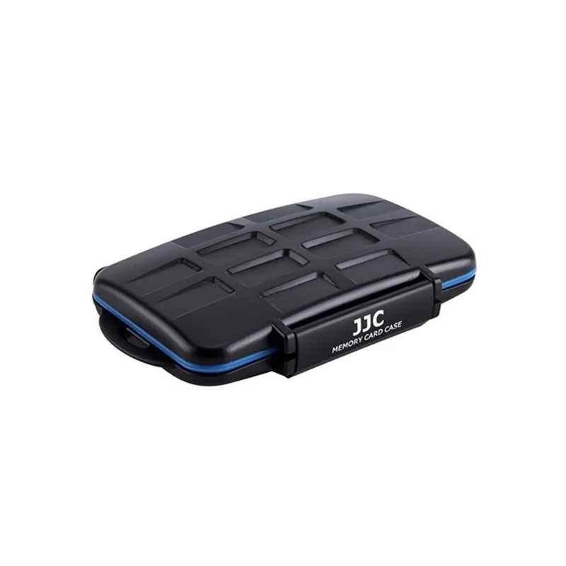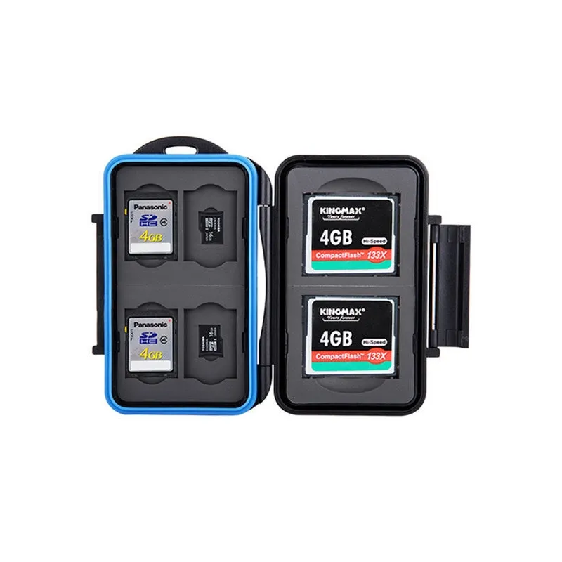 The JJC MC-STC10 Memory Card Case has slots for 2 CF cards, 4 SD cards and 4 Micro SD cards. It is made from environment protective, high quality materials that are safe and reliable. The card slots are ergonomically tailored which makes it easy to store or take them. A soft seal ring effectively protects your cards from dust and water.