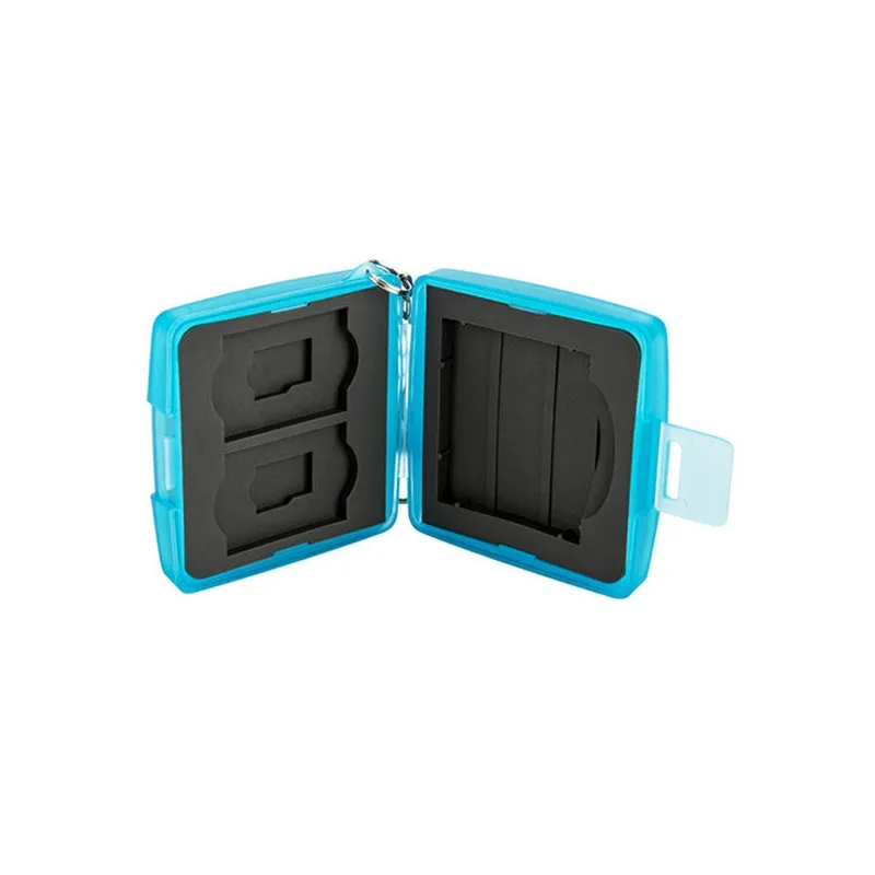 The splash-proof JJC MC-8B Memory Card Case offers protection to a Compact Flash memory card, two SD memory cards and two micro SD memory cards. The absorbent moulded rubber interior ensures that each card stays in position and cannot be damaged by for example shocks. The MC-8B can also be easily attached to the loop of a pair of trousers or a key ring. Handy for travelling!