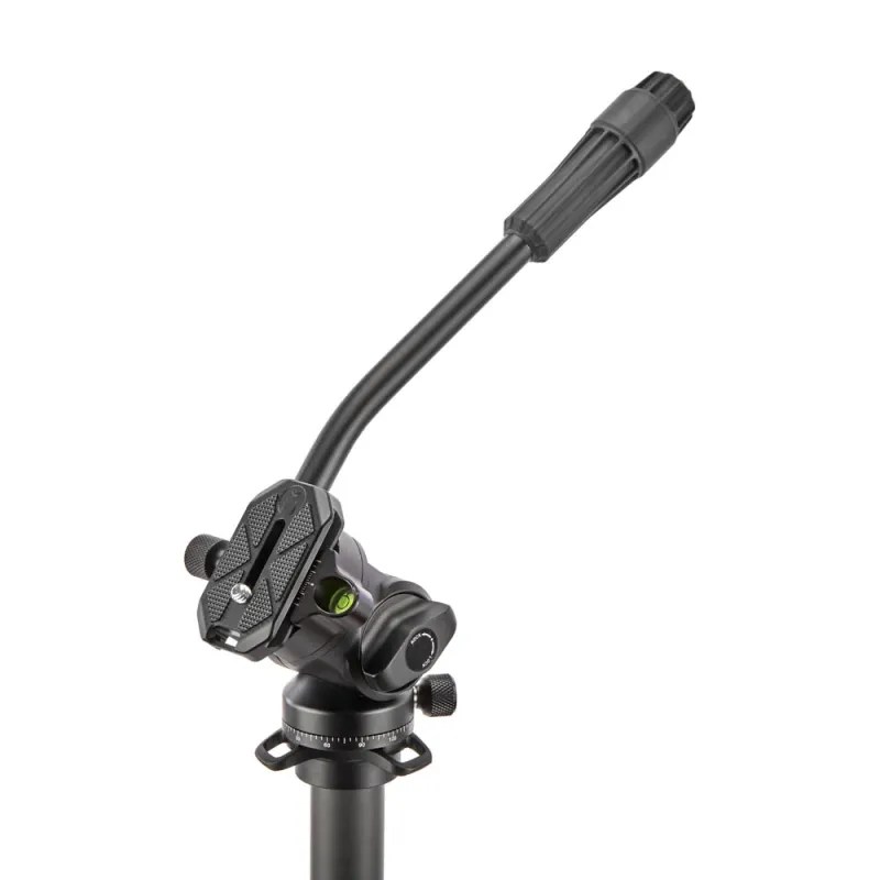 Съемна панорамна рука может регулироватьс с помощью специального винта, а головка включает уровни в базе и зажиме.