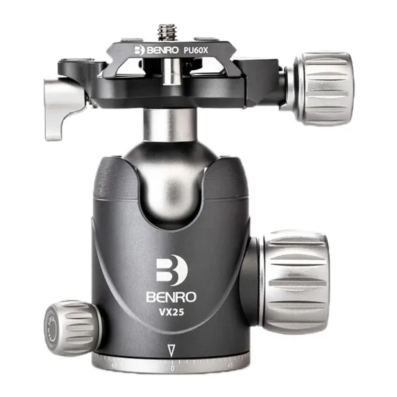 Featuring an elegant and minimalistic design with an excellent strength to weight ratio, the VX25 Two Series Arca-Type Aluminum Ball Head from Benro offers dual panoramic mode, which allows you to pan the head from its base in addition to the quick release platform. The controls are simple, with ball friction adjustments built into the main locking knob and an independent pan lock. This newly designed ball head features a safety lock for the quick release plate, and the included bubble level enables you to accurately level out your shot.