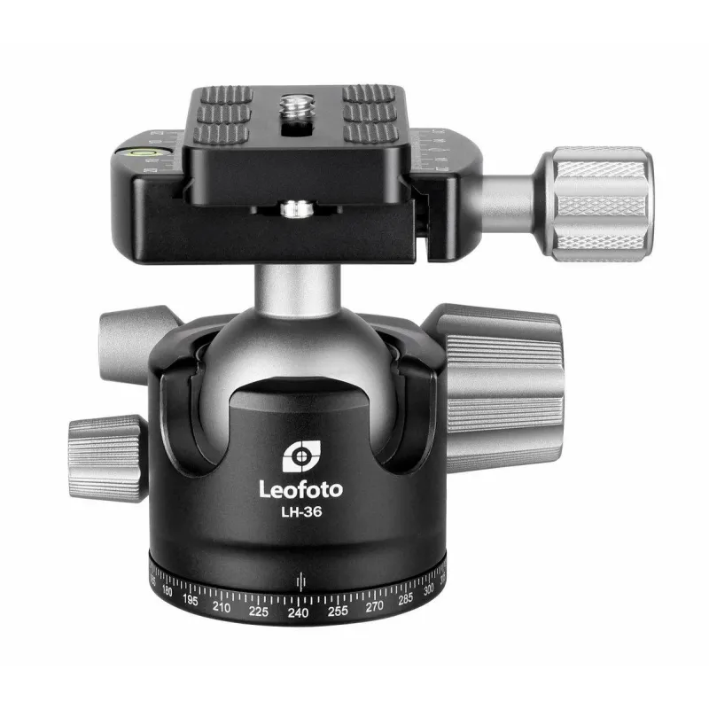 The Leophoto head LH-36+QP-70N is a low-profile aluminum ball head equipped with a quick release system compatible with ArcaSwiss. A precisely made ball with a hollow core ensures ultra-smooth operation, and large ergonomic locking knobs allow full and detailed control of the head.