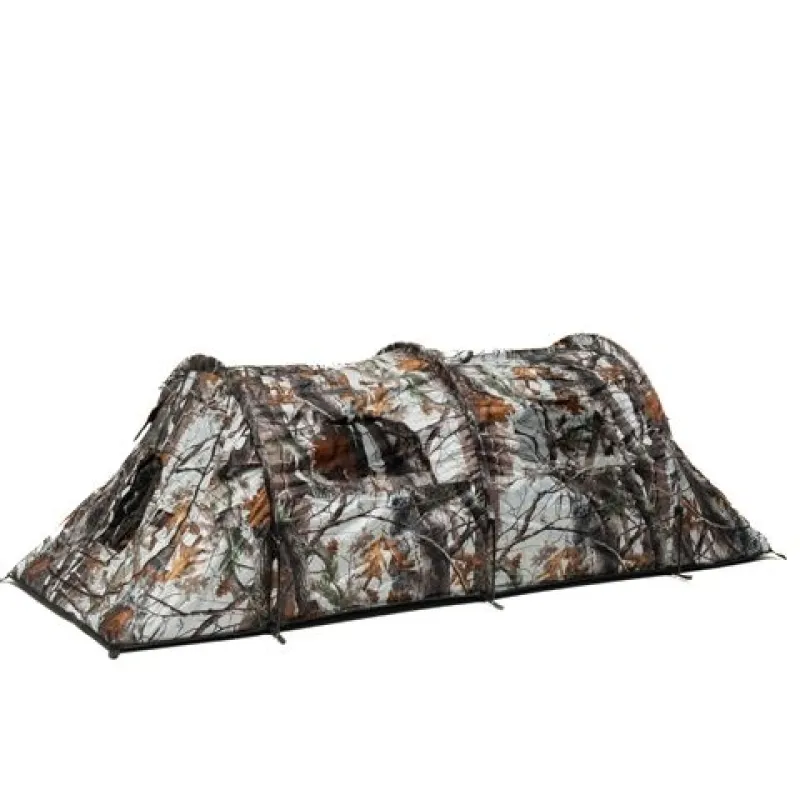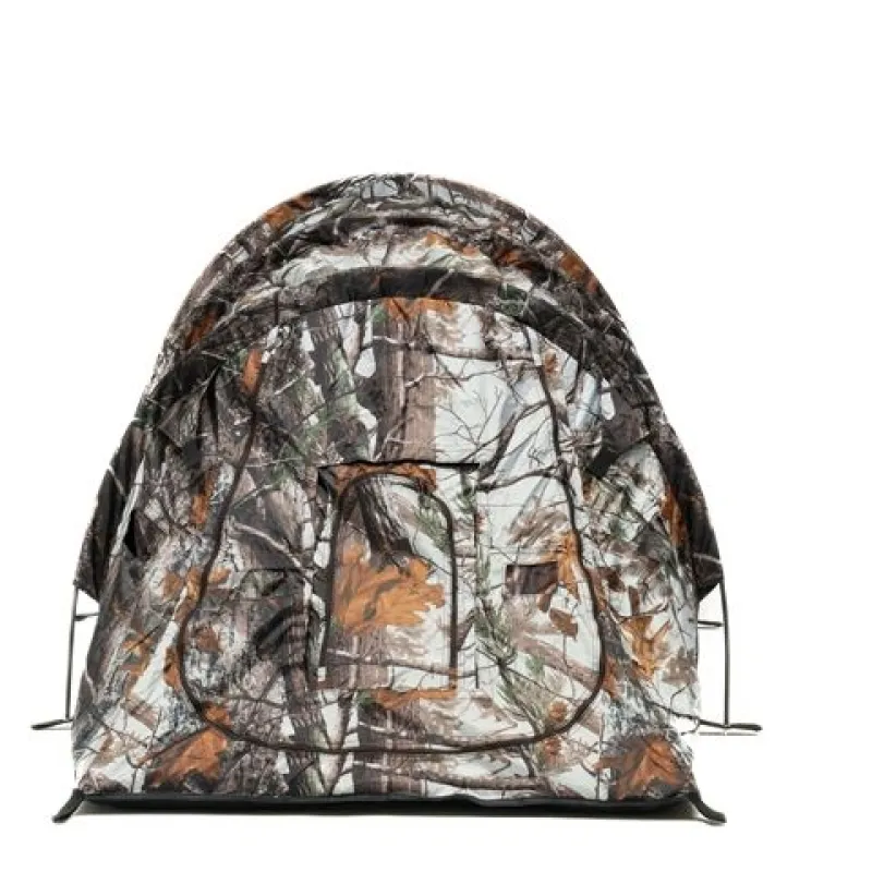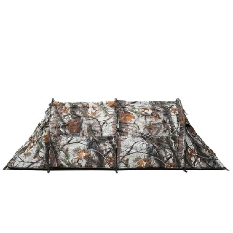 The Falco Mark III Snow is a great camouflage hide, and also has the option of attaching additional camouflage such as branches, leaves, reeds etcetera. These extras can be attached using the strings. If you do this properly, your hide will blend in even more with the area and that is exactly what it is meant to do! Another possibility is to use an extra camouflage net, please feel free to check our page camouflage nets.