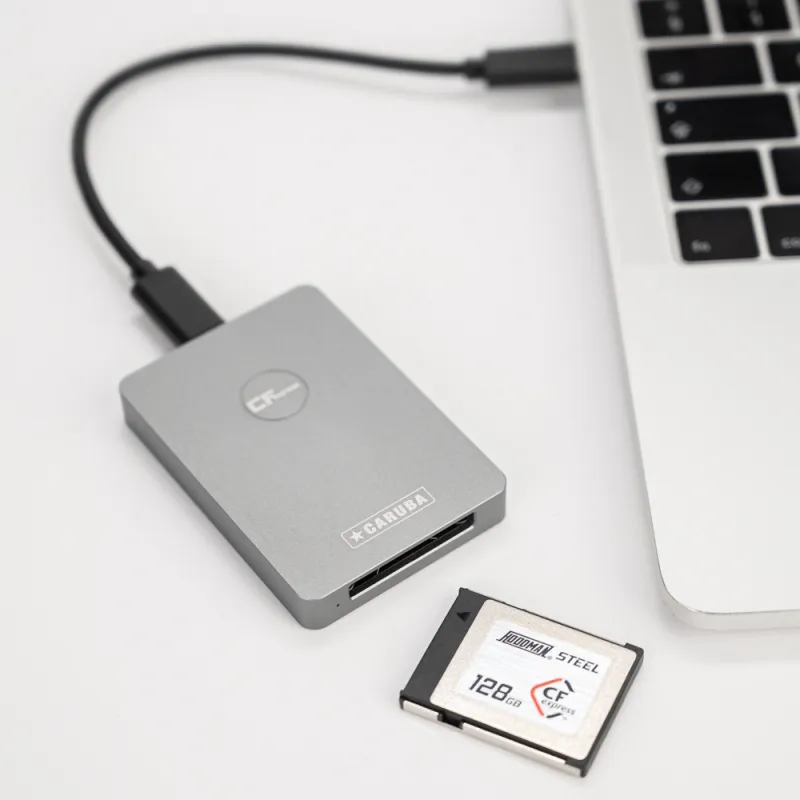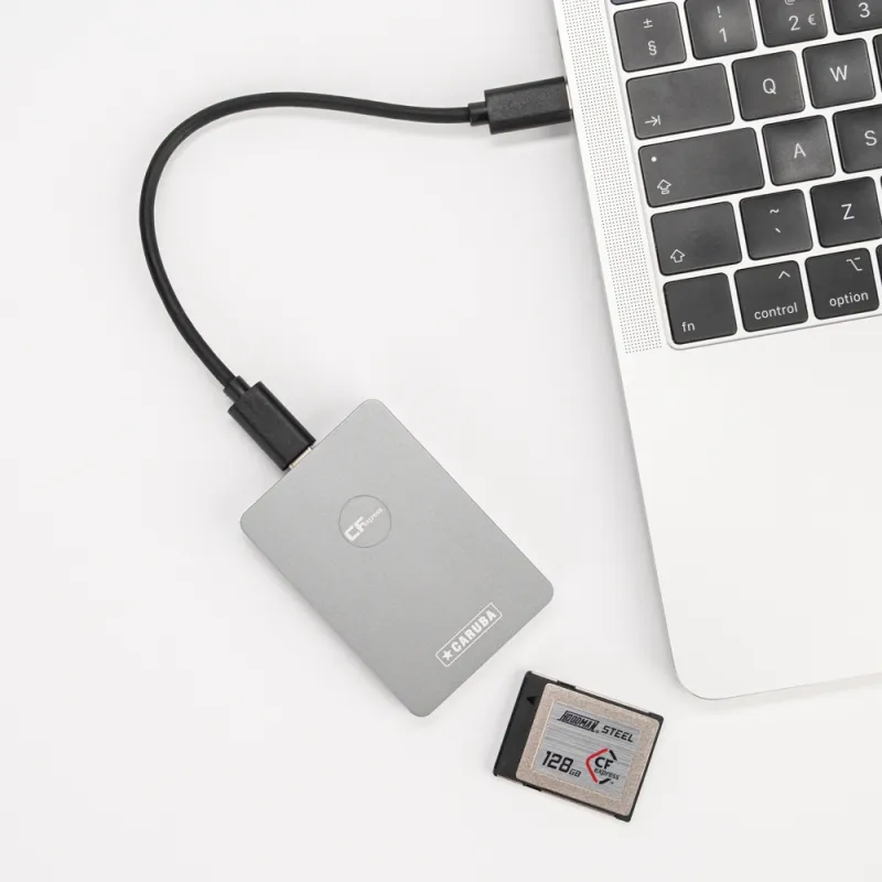 The Caruba Cardreader CFexpress Type B USB 3.1 is a compact and lightweight memory card reader and allows you to transfer files from your CFexpress Type B card to your computer at high speed.