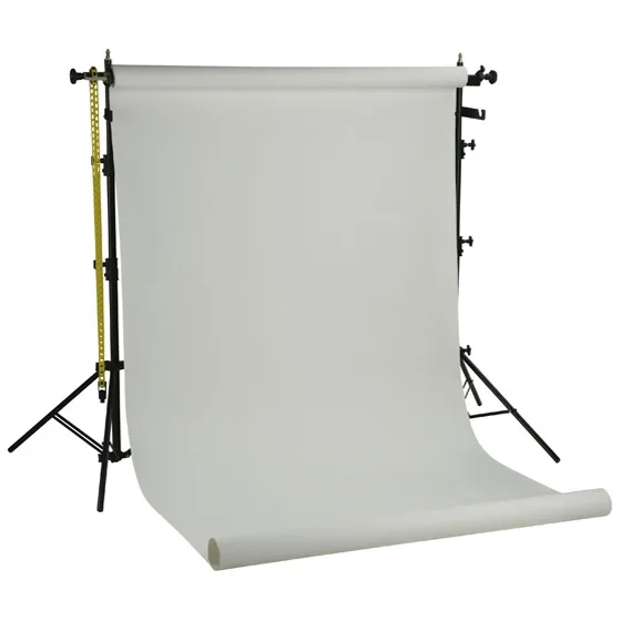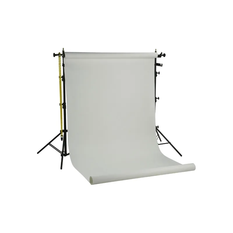 Фоновая система Falcon Eyes SPK-1W с рулоном белой бумаги - это быстрая и простая в сборке система, которая идеально подходит для использования на съемочной площадке или в студии. Falcon Eyes SPK-1W специально разработана для бумажных фоновых рулонов. С помощью прилагаемого комплекта цепей фоновый рулон можно легко свернуть или снять.