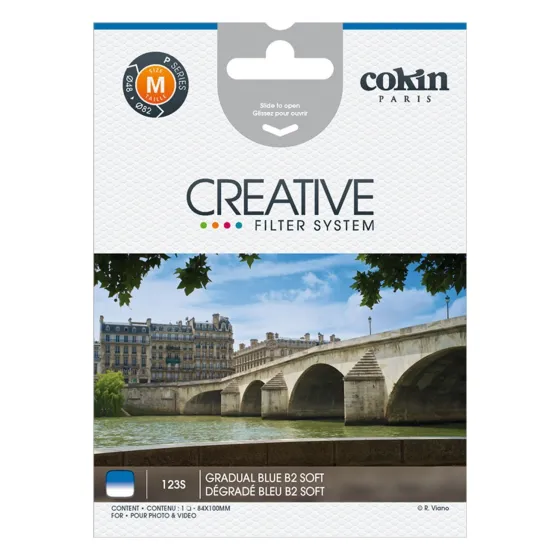 The Cokin Filter X123S Gradual Blue B2 Soft has a blue hue and a half clear area without colour. The filter gives your image a partial blue hue and the gradient between the two areas is very soft. The height of the filter allows you to position the transition in the right place in the filter holder. Cokin graduation filters can also be combined with each other. For example, you can use two gradient filters rotated 180 degrees to each other to blend colours.