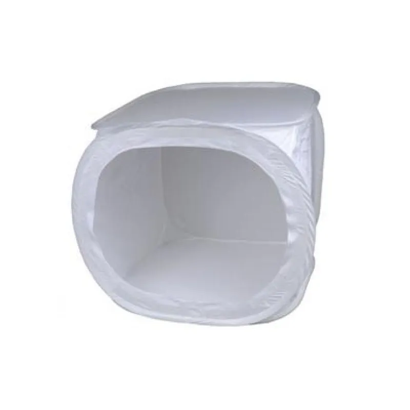 The Falcon Eyes light tents are especially designed for product photography of for instance products such as glass, synthetics, jewellery, watches, ceramics and electronics. The light tent is foldable and with the supplied case easy to take along on location. The diffuse material is very suitable for minimising disturbing reflections and spreads the light equally. The material of the light tent provides a neutral colour temperature. The front of the tent can be closed with the supplied cloth which can be fixed with Velcro. In the cloth is an opening for the lens of your camera. For an ideal lighting the box can be used in combination with normal daylight, continuous lamps or studio flash units.
