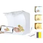 Thanks to the clever design of the photo studio, you can take pictures from different angles - even from above, which is made possible by a special hole. The product is powered by a USB cable. This means that you can connect it not only to a charger, but also to a powerbank, and even to a computer or laptop. Dimensions 23x23x24 cm and the possibility of quick folding of the studio make it very easy and convenient to transport.