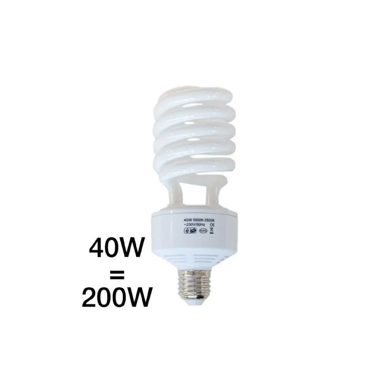 The Falcon Eyes ML-40 40W Daylight Lamp is equipped with an E27 socket, the ML-40 spiral daylight lamp provides a stable color temperature of 5500K.