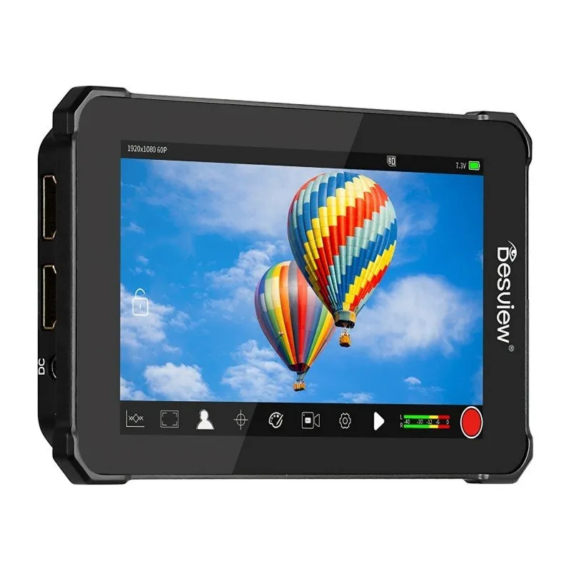 The Desview V5 monitor allows not only viewing, but also recording and playing back video footage stored on a memory card. The device supports FullHD resolution and input signal transmission with a maximum resolution of 4096 x 2160p. The touch screen provides convenient operation of functions, among which there are such solutions as: HDR, gamma correction, color temperature adjustment, False Color, Histogram, Vectroscope, Waveform, Zebra and Peaking. 2800 nits of brightness and 99.5% coverage of the DCI-P3 color space guarantee excellent image quality. Desview V5 offers the ability to upload 150 custom LUT presets. Various power options allow for convenient operation both in the studio and outdoors. The housing made of high-quality aluminum guarantees durability and lightness. Main Product Features view monitor with recording function equipped with a 5.5 "LED touchscreen possibility to record video footage in MP4 format on a memory card playback function of stored videos impressive brightness of 2800 nits 99.5% coverage of the DCI-P3 color space native resolution of 1920 x 1080 px (FullHD) offers input signal transmission with a maximum resolution of 4096 x 2160p @ 24 Hz equipped with HDMI 1.4 output and input includes HDMI / micro HDMI and HDMI / mini HDMI cable support for HDR mode / gamma correction / color temperature adjustment tools for easy control of the captured image (False Color, Single Color, Histogram, Vectroscope, Waveform, RGB Waveform, Zebra, Peaking) support for various aspect ratios (including anamorphic image) adjustment of image brightness, contrast, sharpness and saturation grids, screen markers and safe area support for 3D LUT arrays in CUBE format possibility to upload 150 custom 3D LUT presets 3 programmable function buttons 3 power options - power supply (DC 7 - 24 V), NP-F battery or V-Mount battery (D-Tap cable included) housing made of high-quality aircraft-grade aluminum 3.5mm mini jack headphone output 2 female 1/4" threads for vertical or horizontal monitor installation cold shoe mount included (convenient installation on camera or mount) also included: SD card (32 GB), microSD / SD memory card adapter, Allen wrench and microfiber cloth Ultraight touchscreen The Desview V5 preview monitor is equipped with a 5.5" touch screen. Its brightness is as high as 2,800 nits, which ensures a clear image even when you work in bright sunlight. With 99.5% coverage of the DCI-P3 color space and 10-bit color depth, the Desview V5 accurately reproduces what you want to show in your videos, providing exceptional natural image quality. Video Recording One of the most important advantages of the Desview V5 preview monitor is the recording function. You can not only control the recorded image in real time, but also save it to a memory card. The monitor supports recording in MP4 format with a maximum resolution of FullHD, which guarantees high image quality. Your video footage will be automatically divided into files with a maximum size of 3.6 GB. Desview V5 is a reliable way to backup. Saved videos will be stored not only in the camera or camcorder, but also on additional media (32 GB memory card included). In case of failure or data loss, the backup will let you rest easy. Video playback The Desview V5 monitor is not only a high-quality preview and the ability to record video footage on a memory card. You can use the device as a portable movie player. With the option to view content saved in MP4 files, you can instantly run video footage and check whether the shot recorded moments earlier meets all your expectations. This will save you valuable time on set and quickly make the necessary doubles if necessary. Top performance quality The Desview V5 preview monitor is distinguished by its high build quality. The sturdy housing is made of aircraft-grade aluminum, which ensures optimal light weight (318 g), as well as scratch and drop resistance. This gives you the assurance that the monitor will stay with you for many years. Specially contoured corners are an additional protection against accidental bruises. The modern design makes the device fit perfectly into the aesthetics of professional tools used on film sets. Multiple power ways The Desview V5 preview monitor will work well both in the studio and outdoors. This is because the device supports multiple power ways. If you have an electrical outlet nearby, reach for an AC adapter. And when you're working outdoors or want to avoid tangled cables, use an NP-F battery pack (NP-F550, NP-F750 or NP-F970). You will plug the cell into a special socket with a solid locking mechanism. You will also find a D-Tap cable included with the monitor, which will allow you to connect the device to a V-Mount battery pack. Power supply or batteries MUST be purchased separately. Preview with color correction (3D LUT) The Desview V5 preview monitor enables the use of 3D color tables. This means that already at the recording stage you will apply so-called LUTs, effects that can be compared to filters, which are responsible for color correction of video images. The device has its own library of ready-made presets, but the possibilities of the Desview V5 do not end there. Thanks to a memory card, you can upload as many as 150 custom 3D LUTs to the device, which will allow you to test a professional "film look" on the preview or experiment with unique image styling, even before you start the editing and post-production stage. Fast Exposure Level Assessment The Desview V5 preview monitor offers a variety of tools to help you better evaluate exposure levels while working with your camera or camcorder. Using the "Zebra", "False Color" and "Single Color" modes, you can easily determine which elements of the frame are too bright and which are too dark. These tools will come in handy wherever poor lighting conditions prevent you from accurately assessing the exposure of, among other things, the skin or faces of the filmed characters. Perfect-framing Working 