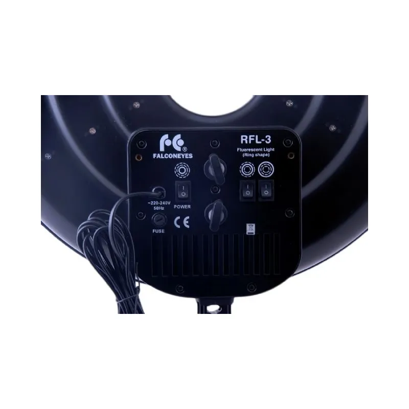The Falcon Eyes RFL-3 90W Ring Light is equipped with 3 lights with a capacity of 22W, 28W and 40W. Due to its strong, lightweight (1.6kg) and stylish design, the RFL-3 is ideal for product photography, portrait photography and videography.