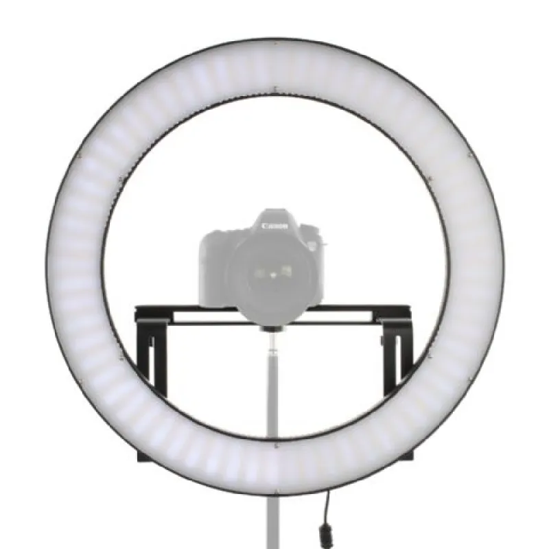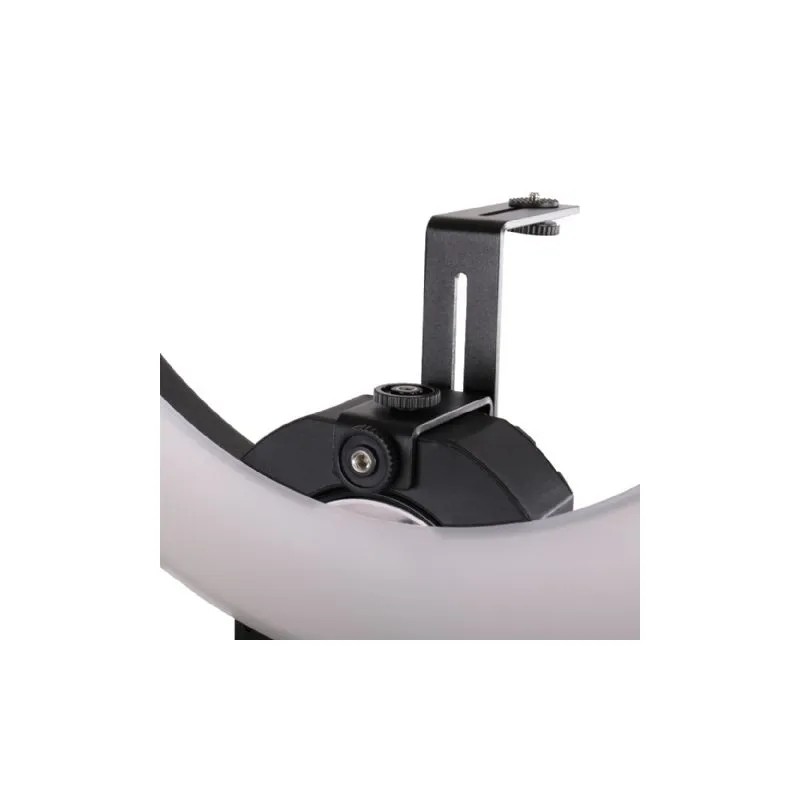 The arm on the holder is 23cm long and is flexible allowing you to position the lamp directly over the object you are photographing or videoing. Further, the opening of the ring lamp is a spacious 36cm.
