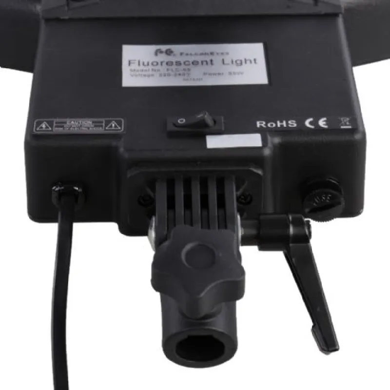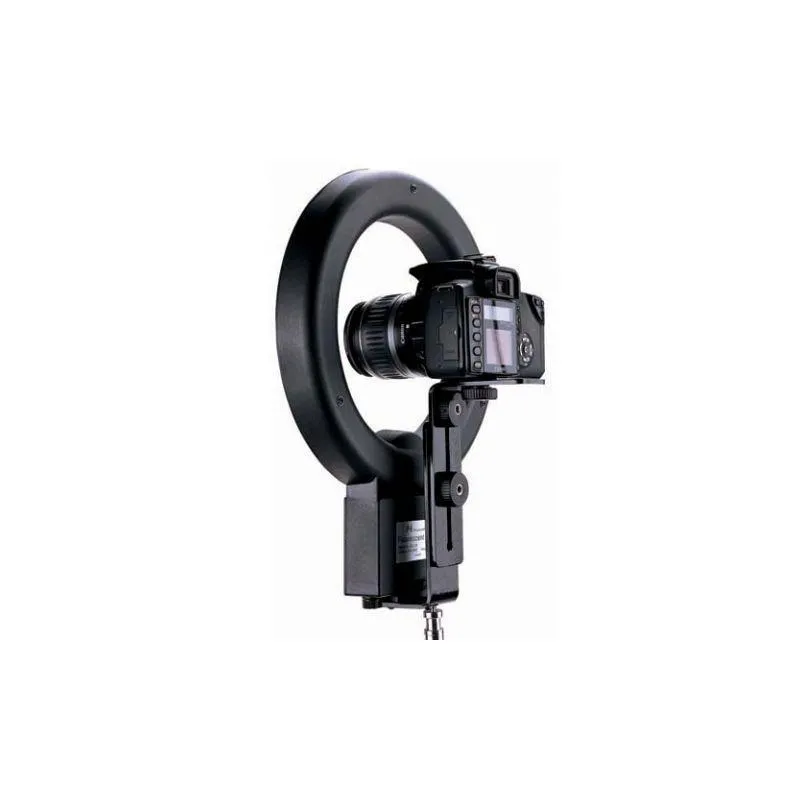 The Falcon Eyes FLC-65 + TMB-19Z Fluorescent Ring Lamp provides a continuous light output of 65W, which has a power comparability of 350W. The FLC-65 + TMB19Z can be easily mounted on an universal light stand or photography accessory which is equipped with a spigot adapter. The ring lamp can be used in conjunction with a shooting table to spread the light evenly across small object to create product photos without shadow. Additionally, the FLC-65 + TMB-19Z is delivered with a camera bracket. This allows you to mount your camera behind the ring lamp in order to place your camera lens through the middle of the opening. In doing so, you are able to spread the light evenly over the object you are photographing.