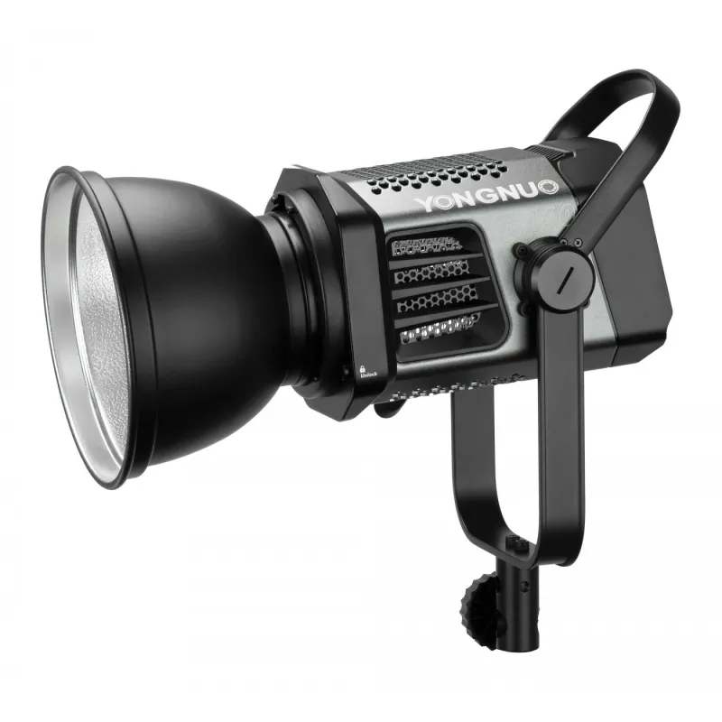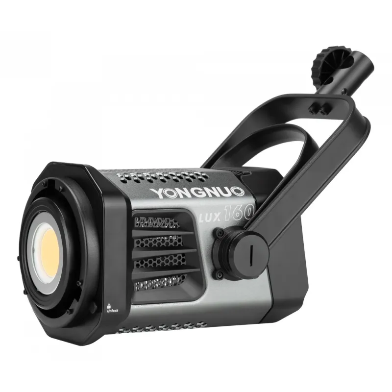 Yongnuo LUX160 LED flash is a powerful source of continuous light, which is ideal for filming and shooting sets. With the additional power supply of V-Mount batteries you can use it not only in the studio but also outdoors. Advanced LED COB technology allows to obtain a steady stream of light at the level of nearly 25,000 lumens. LUX160 offers stepless power adjustment, color temperature 5600 K and a wide beam angle of 110º. There are also 12 theme modes. In combination with the included softbox and grid, it gives great opportunities to create the atmosphere of countless shots and frames. The flash can be controlled remotely both with a detachable remote control, as well as through a smartphone app. Main Product Features LED COB technology enabling a luminous flux of 24480 lm 12 built-in lighting effects (thematic modes) extending the creative use of the lamp maximum light intensity of 35100 lux adjustable color temperature 5600K Bowens system adapter for connection of popular light modifiers removable control module removable lamp control unit which functions as a remote control support for Yongnuo mobile app (iOS/Android) for remote lamp control the ability to power the flash with V-Lock / V-Mount batteries operate in a lighting kit on one of 256 channels 3 cooling modes (silent, standard and efficient) bag with strap for easy carrying bag with shoulder strap included Universal source of powerful light Are you looking for a powerful lamp for your photo set? Or maybe you care about versatile possibilities and convenient adjustment of color temperature and light intensity? The Yongnuo LUX160 LED flash is perfect for a film set, home studio, photo shoots or outdoor recording. The applied LED COB technology allows to achieve a constant power of almost 25 thousand LM. The lamp is characterised by high CRI of 96+. This ensures faithful rendering of colors and depth of tones. Importantly, the lamp consumes much less energy than devices with traditional SMD LEDs. This will be especially important if you are working with a V-Lock / V-Mount type battery and want to enjoy powerful light on a film or shooting set for as long as possible. Adjustable color temperature Do you want your lamp's light to perfectly reflect the atmosphere of a certain time of day, help create a warm or slightly cooler atmosphere and be perfectly matched to the scenery? With the Yongnuo LUX160 you can do it with the help of convenient knobs offering stepless or stepped adjustment (in 10% increments). The light color temperature range here is between 3200 K and 5600 K. Thanks to this, emotions, moods and atmosphere of the created scenes will become even more natural and real. Sunset, explosion and fireworks Looking for a way to spice up your movies with unique special effects? The Yongnuo LUX160 LED lamp offers up to 12 themed modes that will simulate a thunderstorm, explosion, fireworks, broken bulb or strobe, among others. You'll find all the effects under names such as Paparazzi, Fireworks, Simulated lightning, SOS, The bad light bulb, Film screen reflection, Sunrise or Strobe and launch them from the mobile app or the controller placed on the lamp (when detached from the lamp it also acts as a remote control). Take advantage of the special modes and see for yourself how the magic of Hollywood works! Remote control The lamp control unit installed on the housing can be removed at any time and used as a remote control. Thanks to radio communication, you can control the light from a distance of up to 50 meters. In addition to ergonomic buttons, the controller offers a clear and colorful LCD display allowing for quick and convenient adjustment of lamp settings. The device also supports Bluetooth technology. With it, you can also control the flash from the official YONGNUO app, which you can download for free from Google Play (Android) or App Store (iOS). Two power ways If you work at home or in a studio, you can easily connect the lamp to a wall outlet using the included 24 V / 7.5 A power adapter. However, nothing stands in the way of taking the lamp to the field and reach with light inaccessible places. In the set you will find D-TAP cable for convenient connection of the lamp with the V-Lock / V-Mount battery ( it must be purchased separately ), which will be placed in a special bag for easy organization on the set. Additional accessories included In the set with the lamp you will find special modifiers that will allow you to better control the light stream and create a unique atmosphere in your frames and shots. The ergonomic hexagonal parabolic softbox will allow you to soften and diffuse the light, add contrast and precisely illuminate selected parts of the frame. The set also includes a honeycomb grid, which will allow to obtain more artistic lighting. The last modifier is a matte black diffuser (bowl), which is covered from the inside with a silver reflective layer. It will allow you to direct the light even better. All the accessories you will take with you to the set in a robust bag with a shoulder strap, which will protect your equipment and ensure comfortable transport. Bowens mounting system Thanks to the universal Bowens mounting system, which is extremely popular among filmmakers and photographers, you can easily combine the Yongnuo LUX160 LED flash with other light modifiers such as gates, streams, canopies or softboxes. With these, you'll be able to further customize the nature of the lighting for your shots and frames. Effective cooling Thanks to an active cooling system, the lamp can operate at top speed on set for many long hours. The fan, working in 3 different modes (quiet, standard and efficient) will take care of maintaining the right temperature, and the heat will be properly dissipated, thanks to the use of components made of pure copper. The device can successfully operate on one of 256 wireless communication channels, becoming a part of a much larger lighting set. Whether you're using the Yongnuo