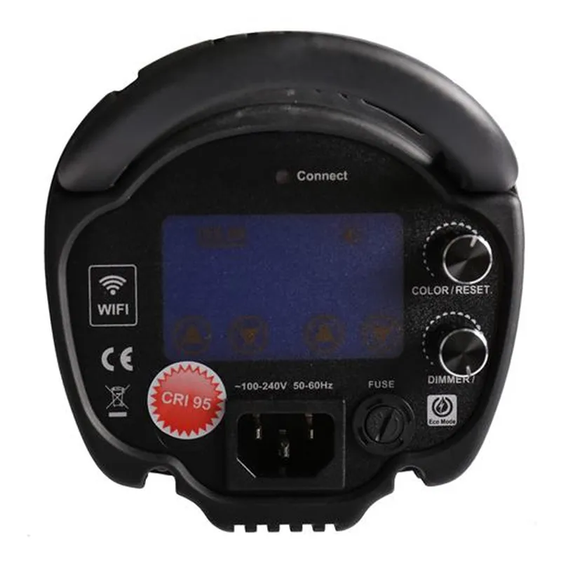 ;You can operate the LED lamp in three ways. For example, the lamp has a clear LCD display on the back. You can operate this using the touch screen and the rotary knobs. In addition, you can also operate the lamp with your smartphone. It is also possible to control multiple lamps centrally with your smartphone, provided they also have Wi-fi compatibility. The app for operation with your smartphone is free to download from PlayStore and the App Store, for both iOS and Android.