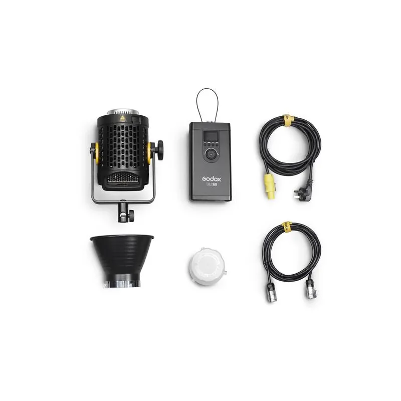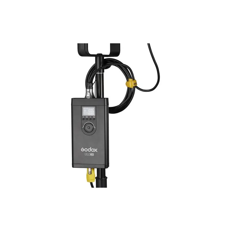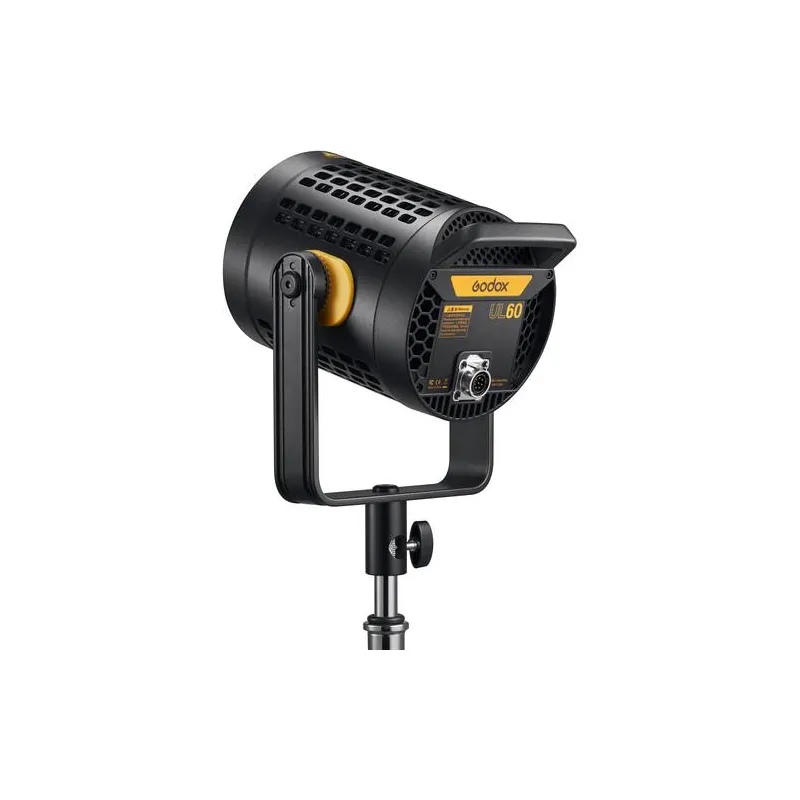 The UL60 Silent LED Video Light from Godox is a daylight-balanced 60W LED light. Designed for sound-recording environments, this versatile light features a fanless cooling design and provides 100% silent operation. Ideal for interviews, online streaming, broadcasting, and cinematography, the UL60 delivers natural-looking light and accurate colors. It has eight built-in presets for flash, storm, TV, and broken bulb lighting effects. There are multiple control methods as well. In addition to making adjustments on the included controller box, the unit is DMX512 compatible. The fixture also provides wireless control over an optional RC-A6 remote, or by using Bluetooth-enabled portable devices with the Godox Light app. The UL60 provides a Bowens S-mount for compatibility with a wide range of accessories, and separately-purchased V-mount battery options allow you to power the light anywhere.