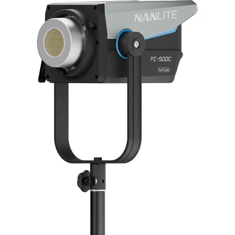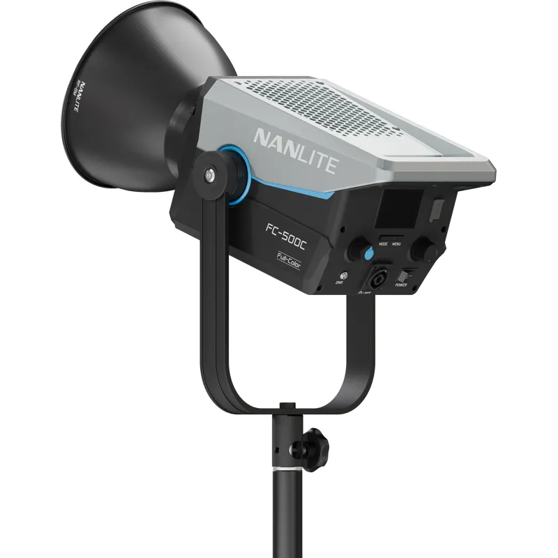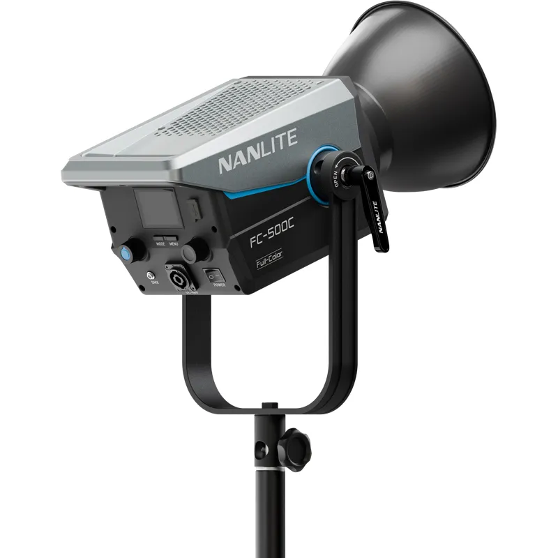 FC-500C - это мощный полноцветный прожектор с номинальной мощностью 520 Вт, сочетающий в себе творческий цветовой потенциал и возможности точного формирования света. Он может создавать мощный узкий луч с отражателями и линзами или красивый мягкий источник света при использовании софтбоксов или рассеивателей.