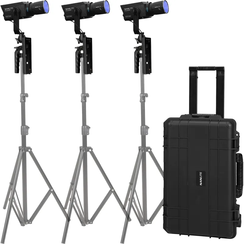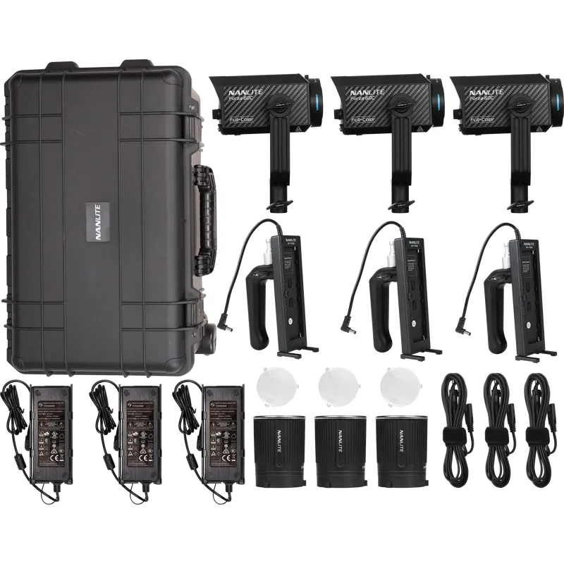 Nanlite Forza 60C RGBLAC LED prožektoru 3 gaismu komplekts ir vieglu un īpaši kompaktu gaismekļu komplekts, kas aprīkots ar 6 krāsu sajaukšanas tehnoloģiju, kas gaismas avotā ietver laima, dzintara un ciāna LED lodītes, ļaujot radīt ļoti precīzu 5600 K dienas gaismas līdzsvarotu gaismu, īpaši plašu CCT diapazonu 1800K-20000K un īpaši dzīvas un bagātīgas krāsas. Gaismas avoti ir mazi, bet to jauda ir liela - tie nodrošina 12 810 luksus @ 1M (1190 fc) pie 5600K. Forza 60C ir gatava darbam studijā, pieslēgta standarta maiņstrāvas kontaktligzdai, vai uz vietas, izmantojot NP-F vai V-Mount baterijas. Komplektā iekļautie piederumi, piemēram, ritošais cietais futrālis, Bowens-Mount adapteri un bateriju rokturi, padara to par pilnvērtīgu risinājumu un būtisku jūsu komplekta papildinājumu.