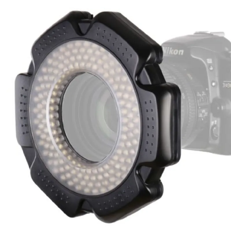 ;There are various possibilities of using the RL-160. When creating portrait photos, you can create beautiful circles in the eyes (see example photo). The RL-160 also produces the right light when shooting macro photos and shooting regular smaller objects. Because the LEDs are placed around the lens, shadows in your picture are minimized. The LEDs shine their light in an angle of 45 degrees. This results in a large range; even over a distance of a few meters. The included adapters are suitable for lenses with a diameter of 49mm, 52mm, 55mm, 58mm, 62mm and 67mm.