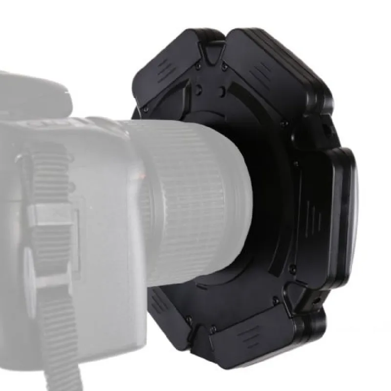 ;The RL-160 from StudioKing is a universal 10W ring lamp with a 95+ CRI value. Thanks to the included adapters, you can easily attach the RL-160 to your camera lens. In one simple move, you can slide the desired adapter firmly into the ring lamp. Then it's a matter of seconds to mount the RL-160 on your lens. The RL-160 has a color temperature of 5600K. You can set the brightness between 10% and 100%, divided into 20 steps. You simply place the RL-160 on a 1/4 inch male thread. With the included adapter, it's possible to slide the RL-160 onto your camera's hotshoe. The RL-160 is powered by 6 AA batteries (not included). Also included is an included cable, which allows the RL-160 to be connected to a universal power adapter (not included).