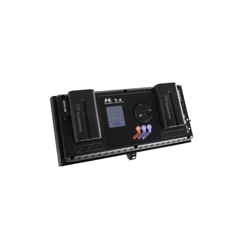Falcon Eyes T6 - это компактный комплект светодиодных ламп, который подходит для фото- и видеосъемки как в студии, так и на природе. Мощная лампа состоит из 144 маленьких светодиодов, которые вместе генерируют мощность 20 Вт. Вы можете самостоятельно плавно регулировать эту мощность, а также цветовую температуру. Эти цвета можно регулировать в диапазоне от 3000 Кельвинов, что дает теплый белый цвет для создания уюта и тепла. Максимальная цветовая температура - 5600 Кельвинов, с помощью которой можно создать холодный белый свет. Это, как правило, дневной свет.