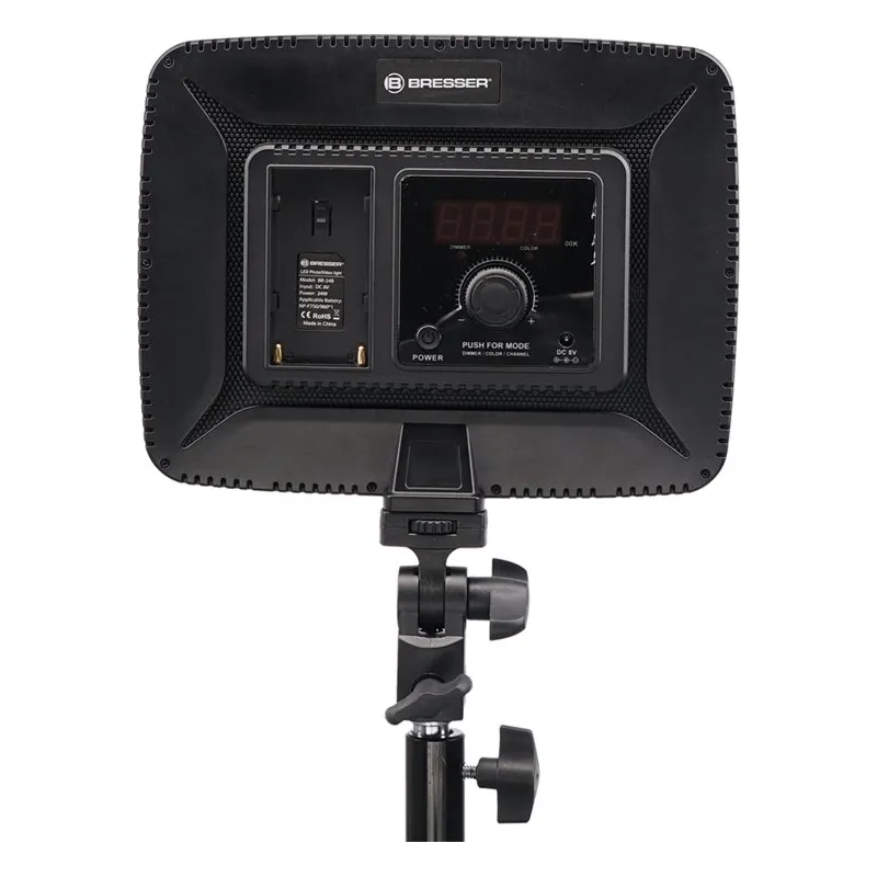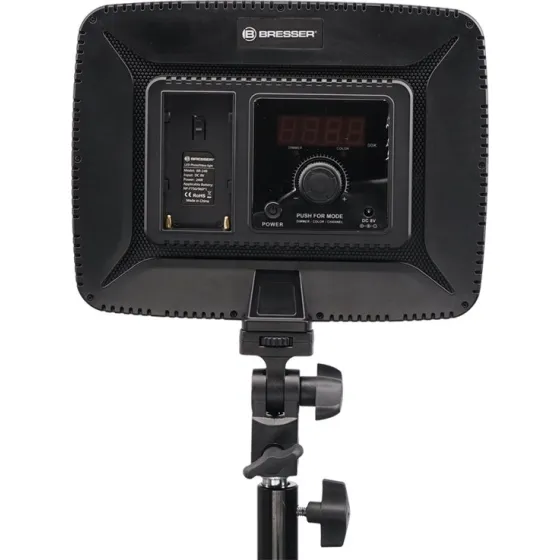 Благодаря соединению на частоте 2,4 ГГц можно управлять светильником дистанционно и комбинировать его с несколькими светодиодными светильниками BRESSER (внимание: они также должны иметь беспроводное соединение).