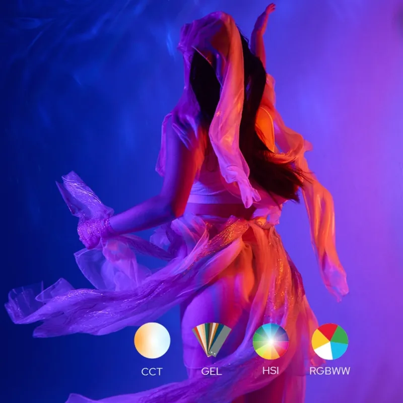 WT40R оснащен мощными светодиодными лампами с множеством цветов, доступных вам в режимах CCT, HSI, GEL и RGBWW.