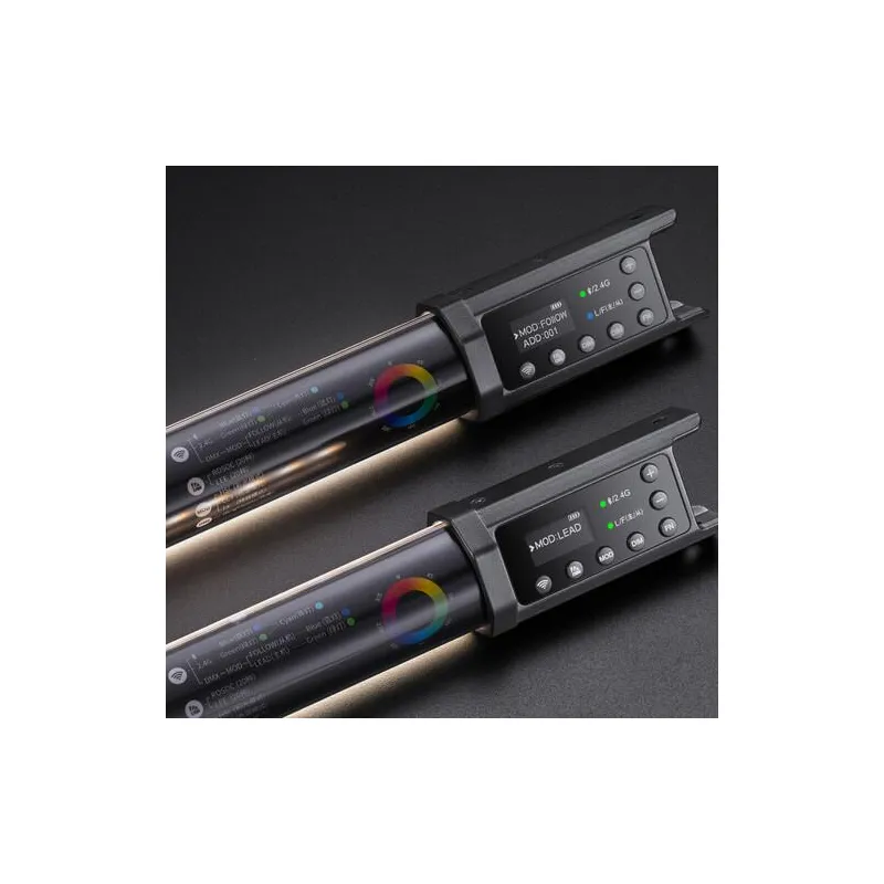 Godox has put together this TL60 Tube Light Two-Light Kit for image makers who regard ultimate color control, a flexible form factor, wireless use, and control as top priorities The light has a built in Li-Ion battery that will give you two hours runtime and much more at partial power. Its 29.5" length and 1.9" diameter make mounting it unobtrusively easy, or even gaffer-taping it an option. It has a wand-like shape, so it just about begs to be handheld. The kit includes two 29.5" TL60 Tube Lights, each with a power adapter, an internal battery, a power cable, an RJ-45, a DC power cable, two wire ropes, a fixed base, and a toggle clip. A remote control with a 164' range and carrying bag are also included.