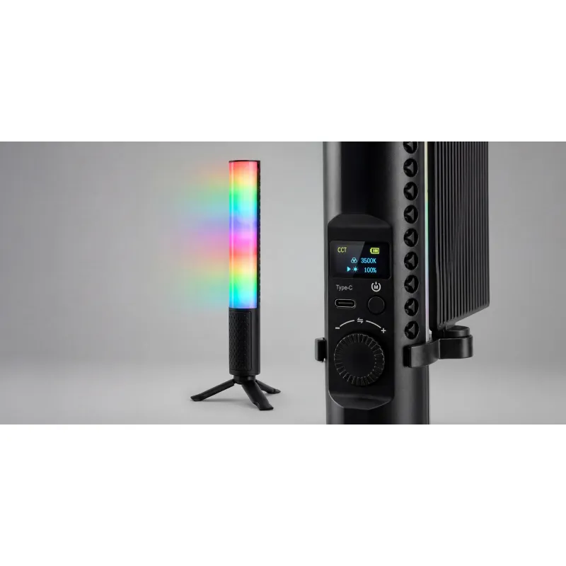 Светодиодная лампа Newell RGB Kathi III - это универсальный, мобильный источник света, предназначенный для создателей фото и видео, желающих полностью контролировать цвет, цветовую температуру и характер освещения. С мощностью 20 Вт, CRI 95 и до 150 светодиодов, она гарантирует натуральные цвета и качественный свет для портретной и продуктовой фотографии, а также видеозаписей. Диафрагма 0359, регулировка температуры от 1800 K до 9000 K и 20 специальных эффектов позволяют легко настроить свет под сцену. Встроенный аккумулятор на 2600 мАч обеспечивает работу без кабелей, а зарядка через USB-C повышает мобильность. В комплект входят рассеиватель, шторки и мини-трипод, поэтому лампа готова к творческой работе сразу из коробки.