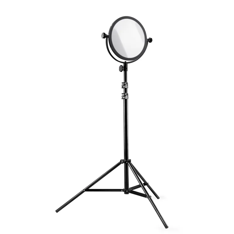 The LED 300 Round can be mounted by a 360 degree swivel mounting bracket with the spigots easily on a tripod to be tilted in all directions and are therefore optimally adapted to the shape of the subject. Thanks to the 5/8 inch spigots You can mount the light on all popular light stands .
