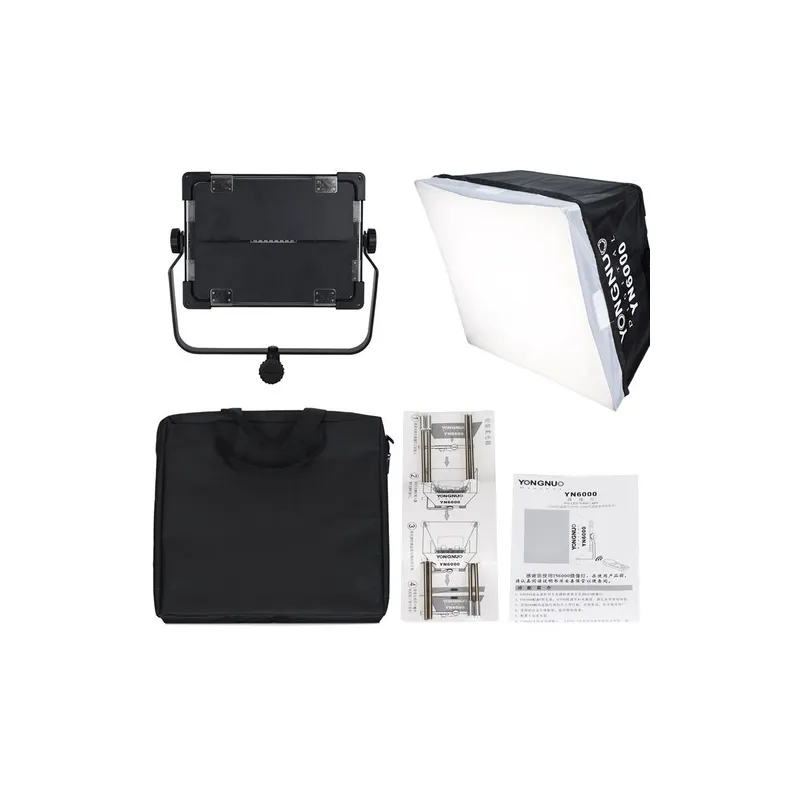 The YN6000 Bi-Color LED Panel is one of a series of dimmable LED lights from Yongnuo with color that's variable from 3200-5500K to meet any ambient light challenges, match other fixtures, or to spark creativity. The light's high CRI rating of 95 is an indicator of precise color rendition. A downloadable mobile phone app is available to control the light with separate purchase of a receiver. Designed for work in the studio or the field, the YN6000 runs on a separately purchased AC adapter or two NP-F batteries, when mains power is unavailable. A softbox and a storage bag are also included.