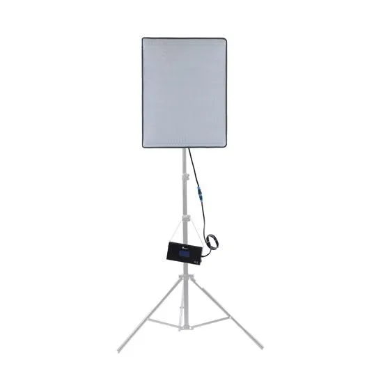 The lamp is lightweight, only a few millimetres thick and can be folded into any shape. In addition, you can use the lamp both via mains current and with a V-mount battery (optionally available). The LED-mat is splashproof, so you can also use the lamp outside when it drizzles, for example.