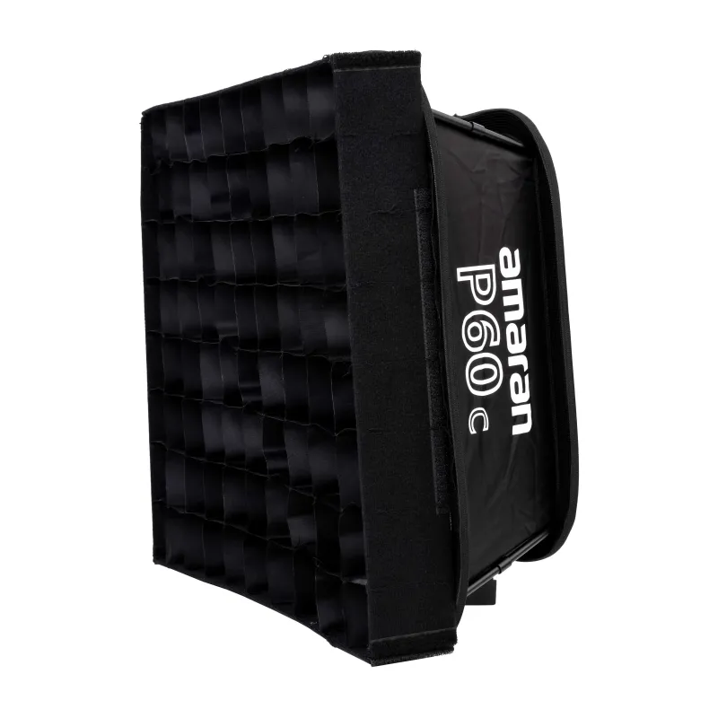 With the unique design of the P60c, users can attach the included collapsible soft box to the four corners of the panel without any tools or screws. The P60c also includes a 45° light control grid for the soft box, limiting spill light and easily attaching using hook-and-loop fabric.