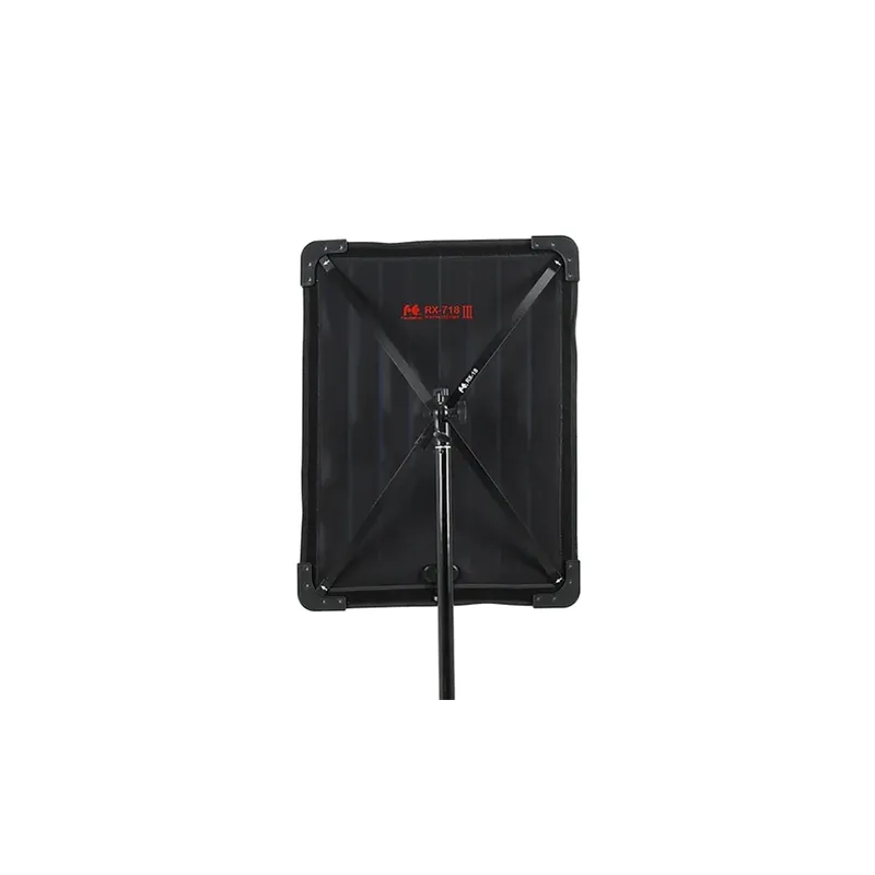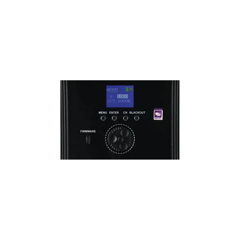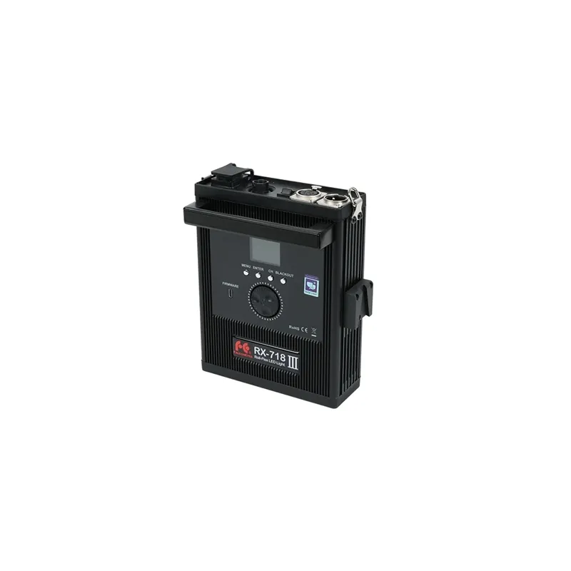 If you work in a studio and are looking for a universal light source, the RX-718 III-K1 is indispensable. Besides an infinitely adjustable cold and warm light, you can also set all the colors of the rainbow. The brightness is also infinitely adjustable. There are special modes for the film industry, simulating police flashing lights, candlelight and thunderstorms. All are adjustable in terms of tempo and brightness. When there are new features or improvements in the future, you update the RX-718 III-K1s firmware very easily via the smartphone app. The RX-718 III-K1 has a built-in fan for cooling, which is very quiet. It also turns on only when needed. At half a meter away, the RX-718 III-K1 produces a noise of 33.5 db. Should this be undesirable place the controller further away using a special extension cable (see optional accessories).