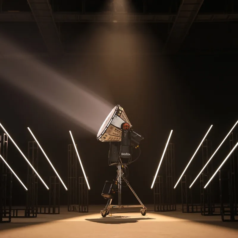 Godox BeamLight Max90 увеличивает проекционное расстояние и яркость светодиодных светильников G Mount, таких как KNOWLED MG2400Bi и MG1200Bi. В паре с MG2400Bi он обеспечивает впечатляющую яркость, схожую с традиционными 12K HMI-светильниками, но при этом является более энергоэффективным и простым в установке.