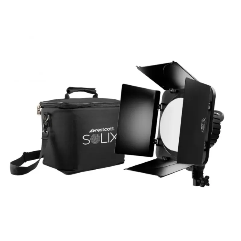 Компактный комплект Westcott Solix включает в себя мощный портативный светодиодный светильник. Этот непрерывный свет обеспечивает фотографов и видеографов дневным светом с цветовой температурой 5 600K. Лампа отличается быстротой и простотой использования благодаря вращающемуся кольцу, к которому можно прикрепить различные софтбоксы.