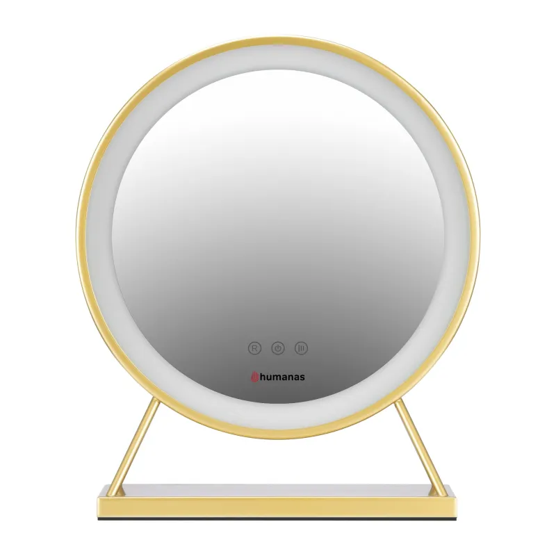 Humanas HS-HM04 mirror with LED lighting is not only a great tool for working with makeup, but also a beautiful decoration that will find its place in any interior. It is equipped with a touch panel that allows for quick and convenient power adjustment. In order to perfectly match the light to the environment, time of day or your unusual make-up ideas, 3 levels of color temperature - warm, cold and neutral - were also taken care of. The golden metal finish is perfect for both home and makeup studios, and the LED panel made of milky plastic will provide soft light to optimally illuminate your face.