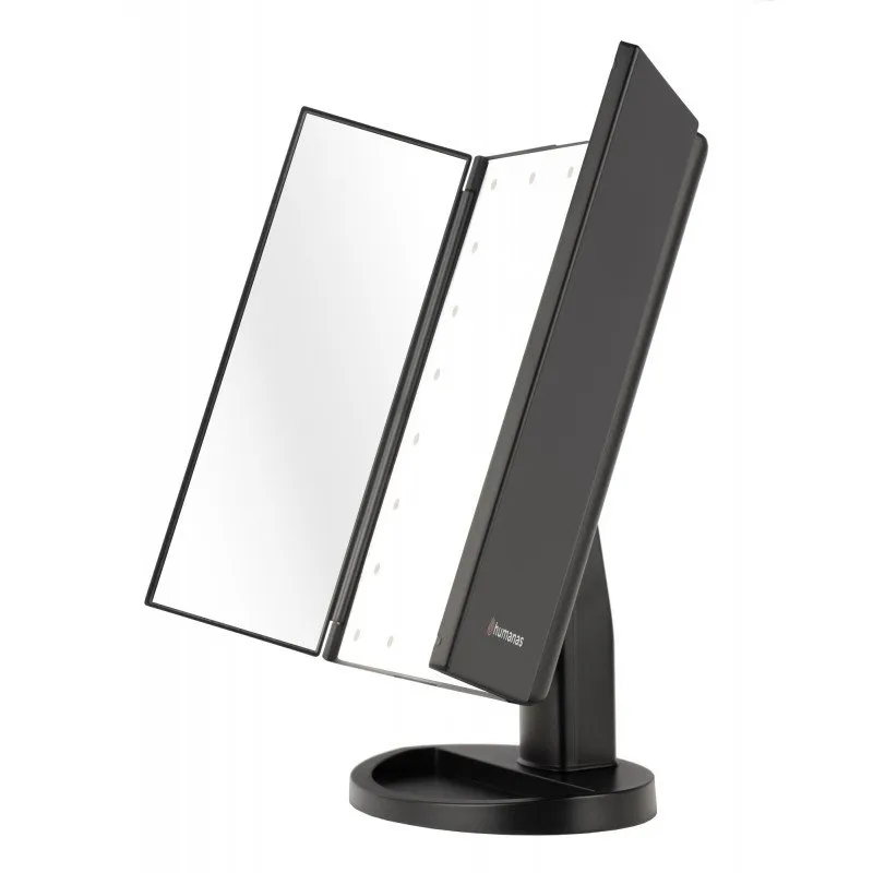 Зеркало для макияжа Humanas HS-ML04 - это идеальное сочетание стиля и функциональности. Оно идеально освещает лицо и превращает ежедневный уход за собой в настоящее удовольствие. Сенсорная кнопка, встроенная в поверхность зеркала, позволит вам легко отрегулировать яркость освещения в соответствии с вашими текущими потребностями. Устройство может работать от батареек типа ААА или от входящего в комплект USB-кабеля, подключенного к банку питания, компьютеру или зарядному устройству. Быстрое и удобное раскладывание экономит место на столе или туалетном столике. Наклоняющиеся на 180º модули дадут вам еще больше свободы при нанесении макияжа. Благодаря дополнительным увеличивающим зеркалам вы сможете полностью контролировать каждую деталь своего макияжа. Основные характеристики товара зеркало для макияжа с подсветкой и дополнительными зеркалами быстрое и удобное раскладывание экономит место на столе или туалетном столике открытые ворота оснащены дополнительными зеркалами (в том числе увеличительными) главное зеркало со светодиодной подсветкой размером 16 x 23,5 см удлиненное дополнительное зеркало размером 7,8 x 23,5 см 2 увеличительных зеркала (x2 и x3) размером 7,8 x 11.6 см 21 светодиод, встроенный в полотно зеркала, расположенный вокруг основного зеркала регулируемый световой поток боковые зеркала можно наклонять на 180º контактная кнопка, встроенная в поверхность зеркала возможность питания через порт micro USB кабель USB-A / micro USB в комплекте Изысканный макияж Зеркало для макияжа Humanas HS-ML04 - это гарантия идеального освещения, необходимого при нанесении макияжа или ежедневном уходе за собой. Эргономичное расположение светодиодов вокруг главного зеркала - проверенный способ сделать идеальный макияж, доведенный до совершенства в каждой детали. Решение, которое уже много лет сопровождает профессионалов в индустрии "красоты", будет успешно работать и в домашних условиях. 21 светодиод - гарантия красивого и равномерного освещения лица. Выбирая зеркало Humanas HS-HM02, вы можете быть уверены, что ваш макияж будет идеальным! Уникальные зеркала-помощники Своей уникальной функциональностью зеркало Humanas HS-ML04 обязано специальным складным воротам. Открыв их, вы обнаружите на левом крыле дополнительное зеркало, которое расширяет функциональность всей конструкции. Однако это еще не все. Второе крыло разделено на две части, предлагающие разные типы зума - 2x и 3x. Благодаря дополнительным вспомогательным зеркалам вы получаете уверенность в том, что каждый элемент вашего макияжа будет отполирован до совершенства. Регулируемая мощность подсветки зеркала Humanas HS-ML04 - это гарантия полного контроля над интенсивностью освещения. Когда вы готовитесь к вечеринке или важной встрече, вы можете увеличить мощность подсветки, чтобы получить яркое и точное отражение, которое поможет вам аккуратно нанести макияж и подчеркнуть мельчайшие детали. Во время ежедневного ухода за собой подсветку можно сделать чуть менее интенсивной, чтобы не напрягать глаза. Просто удерживайте сенсорную кнопку дольше, чтобы плавно отрегулировать яркость и настроить ее в соответствии с вашими текущими потребностями. Два способа питания Зеркало для макияжа Humanas HS-ML04 обладает большой гибкостью в плане питания. Вы можете использовать традиционные батарейки ААА или подключиться к кабелю micro USB. П