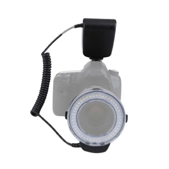 ;There are various possibilities of using the RL-160. When creating portrait photos, you can create beautiful circles in the eyes (see example photo). The RL-160 also produces the right light when shooting macro photos and shooting regular smaller objects. Because the LEDs are placed around the lens, shadows in your picture are minimized. The LEDs shine their light in an angle of 45 degrees. This results in a large range; even over a distance of a few meters. The included adapters are suitable for lenses with a diameter of 49mm, 52mm, 55mm, 58mm, 62mm and 67mm.
