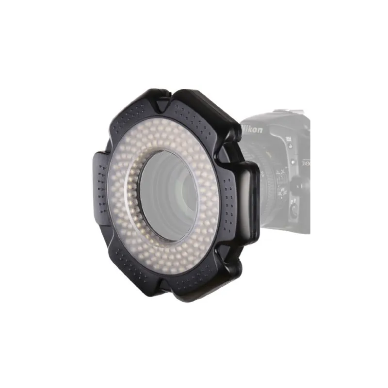 ;The RL-160 from StudioKing is a universal 10W ring lamp with a 95+ CRI value. Thanks to the included adapters, you can easily attach the RL-160 to your camera lens. In one simple move, you can slide the desired adapter firmly into the ring lamp. Then it's a matter of seconds to mount the RL-160 on your lens. The RL-160 has a color temperature of 5600K. You can set the brightness between 10% and 100%, divided into 20 steps. You simply place the RL-160 on a 1/4 inch male thread. With the included adapter, it's possible to slide the RL-160 onto your camera's hotshoe. The RL-160 is powered by 6 AA batteries (not included). Also included is an included cable, which allows the RL-160 to be connected to a universal power adapter (not included).