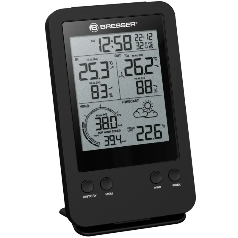 The wind gauge from BRESSER is a professional anemometer for your home garden. You can read the current wind speed from the base station as well as average and maximum values per hour, day, month or year can also be displayed. A wind speed alarm can also be set.