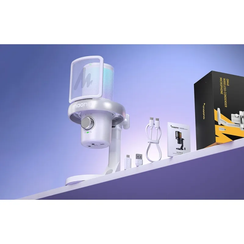 Maono DM40 Pro - это беспроводной игровой микрофон с AI-технологией, который предлагает звук студийного качества, интуитивное управление и различные режимы использования (игры, влогинг, озвучивание). 16-мм конденсаторная капсула и частота дискретизации 48 кГц / 24 бит позволяют записывать звук с высокой детализацией и широким частотным диапазоном (20 Гц - 20 кГц). Устройство может работать до 75 часов на одном заряде, а передача аудио без задержки (0,02 с) обеспечивает полную синхронизацию голоса и видео.