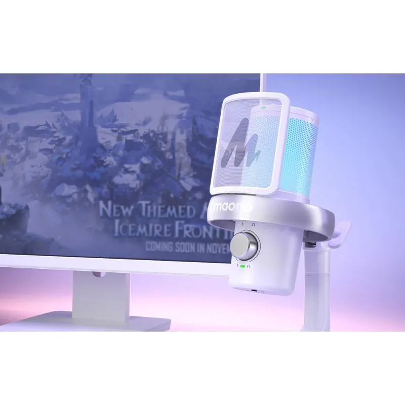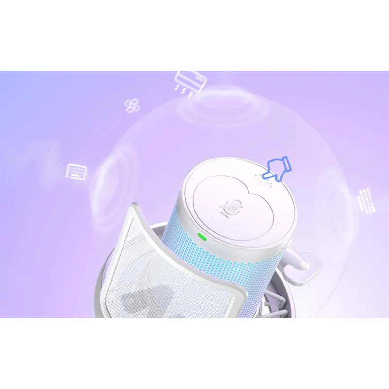 Электретная конденсаторная капсула захватывает звук во всех направлениях, что делает микрофон подходящим как для одиночных стримов, так и для групповых разговоров. Частотный диапазон от 20 Гц до 20 кГц и высокое отношение сигнал/шум (73 дБ) обеспечивают чистый и динамичный звук. Дизайн микрофона основан на прочной основе, с возможностью включения мониторинга микрофона и переключения режима RGB, что обеспечивает как комфорт использования, так и эстетику подставки.
