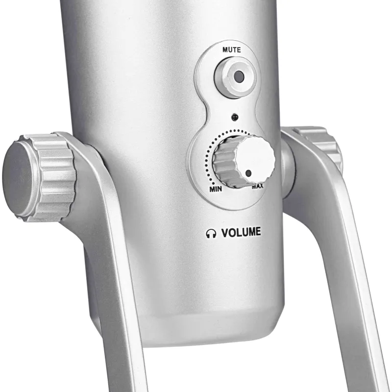 This mic can capture your audio in up to 16 bit/24 kHz resolution, and it features gain control, mute button, zero-latency headphone output.