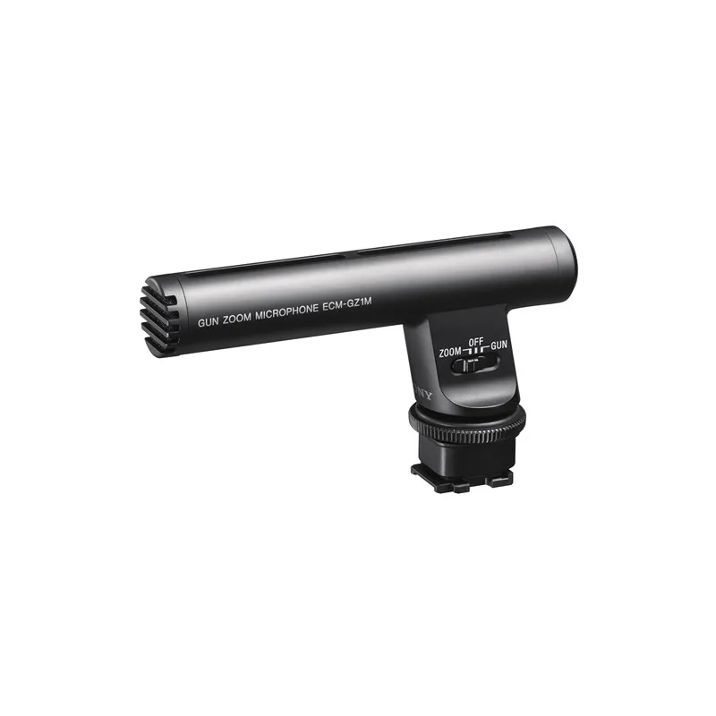 The Sony ECM-GZ1M Zoom Microphone is a monaural on-camera microphone that features a hot shoe interface specifically for Sony cameras and camcorders that have the propriety Multi-Interface Shoe. The microphone is designed to help isolate the sound you want originating from the subject while rejecting unwanted ambient noise. It offers two setting to choose from: a "Gun" Mode which locks the microphone in a fixed pick-up pattern, and a "Zoom" Mode which dynamically adjusts the pick-up pattern in relation how much you zoom in, making the microphone pick-up angle narrower as you zoom closer - Zoom Mode requires a camera or camcorder with a zoom lens.